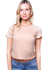 Women's Ruffle Short Sleeve Ribbed T-Shirt