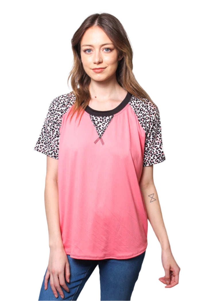 Women's Short Sleeve Animal Print Color Block Top